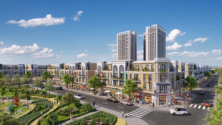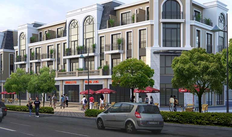 Đặc biệt, ngoại thất của các căn shophouse được nhấn nhá bằng vật liệu đá cao cấp và các hàng cột trụ uy nghi, tạo ra một vẻ ngoài bề thế và đẳng cấp. Điều này không chỉ thu hút ánh nhìn mà còn là nền tảng hoàn hảo để các chủ nhân phát triển các mô hình kinh doanh hàng hóa, dịch vụ cao cấp (như boutique thời trang, phòng trưng bày), mang đến trải nghiệm mua sắm và dịch vụ độc đáo, khác biệt cho khách hàng tinh hoa.