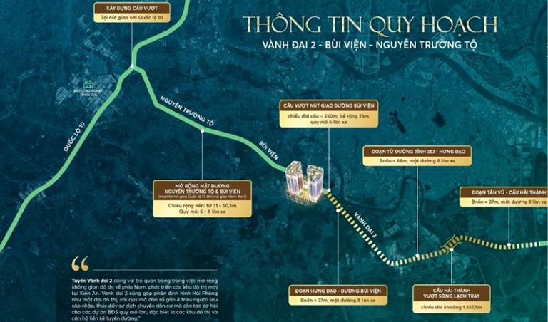 Dự án Đường Vành đai 2 đoạn Tân Vũ – Hưng Đạo – Bùi Viện (quy mô 8 làn xe) là một trong những dự án giao thông trọng điểm, có vai trò mở toang cánh cửa kết nối khu vực. Việc xây dựng cầu vượt tại nút giao Đại lộ Bùi Viện (gần Golden Point) sẽ giải quyết triệt để tình trạng ách tắc, tăng tốc độ lưu thông và khả năng tiếp cận của khách hàng từ mọi phía.