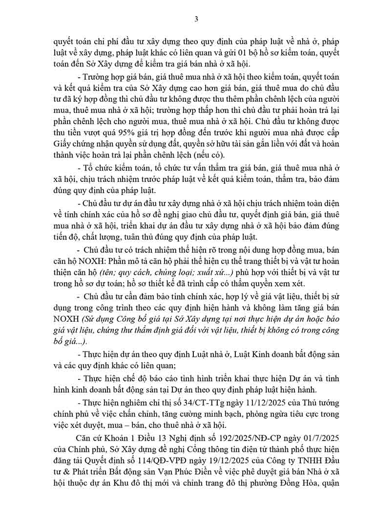 – Trách nhiệm của chủ đầu tư: Công ty Vạn Phúc Điền phải tổ chức kiểm toán độc lập và quyết toán toàn bộ chi phí đầu tư xây dựng.